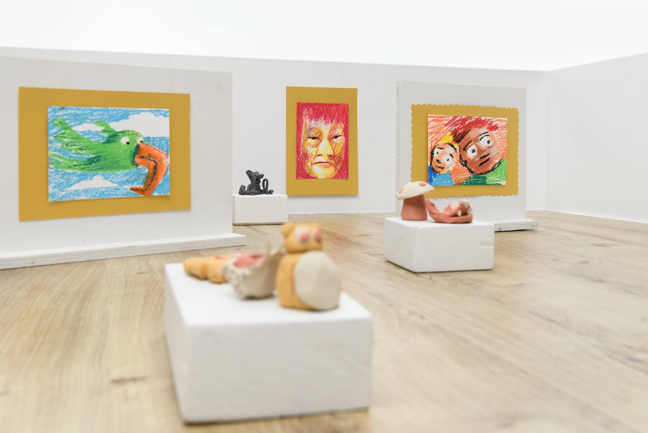 I Nasjonalmuseets Minimuseum kan du lage små kunstverk og stille dem ut i museet. Tegn med oljepastell og voksstifter, eller lag små skulpturer i farget leire.